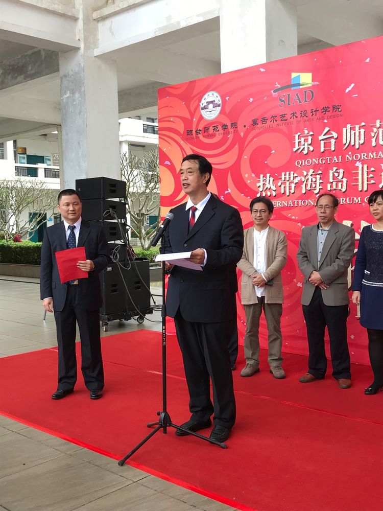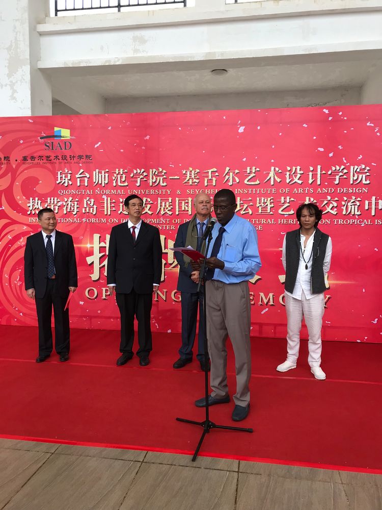 大卫·安德里市长代表塞舌尔艺术设计学院讲话,他强调,手工艺作品传递人们对艺术的追求和对生活的热爱,希望两校在艺术教育方面展开全面的合作。