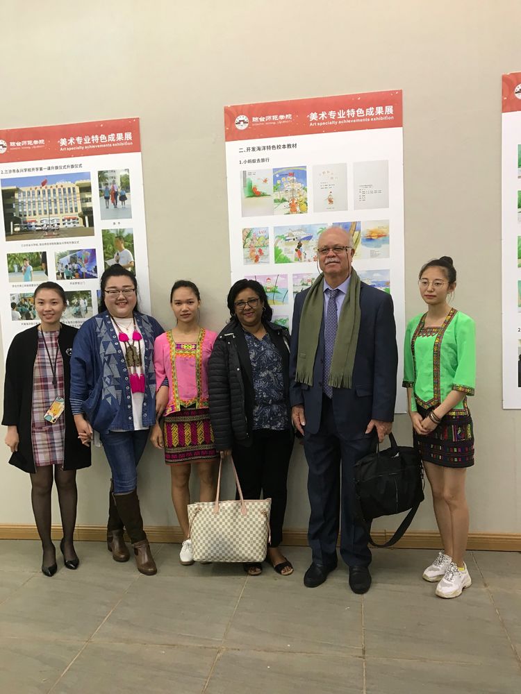 琼台师范学院院长曹阳介绍了琼台师范学院的历史和现状,指出琼台师范学院在海南最早开展美术和音乐教育,特别是美术教育在全国、全省均走在前列,希望借助中国的“一带一路”倡议及海南自由贸易试验区和中国特色自由贸易港的建设,架起一座中非艺术交流新的桥梁。