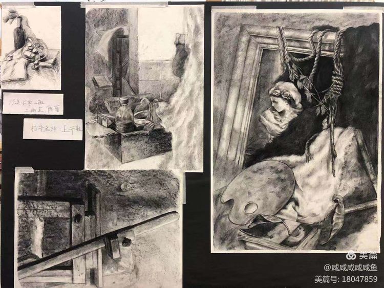 学生素描作业范例: