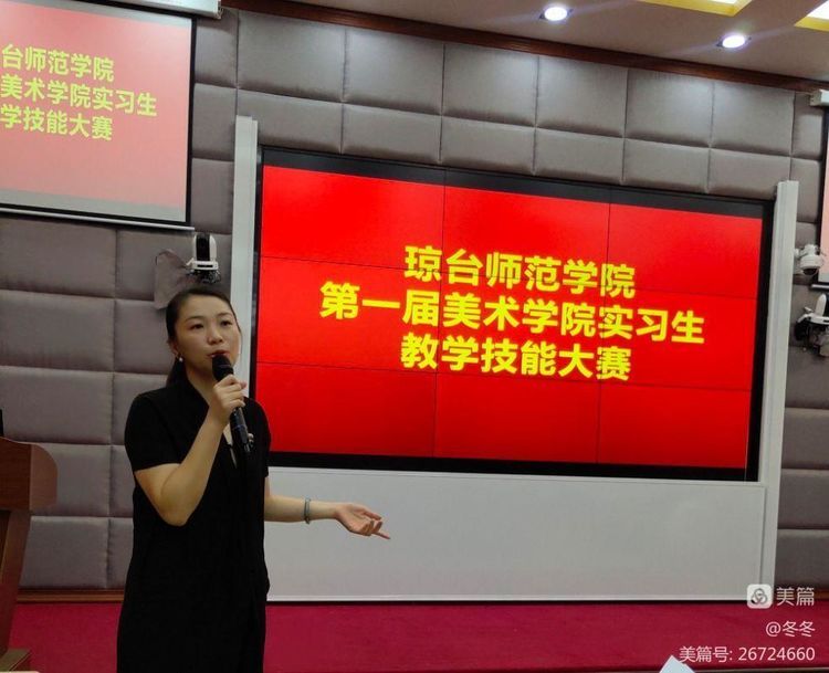 2021年4月15日上午8:30,第一届美术学院实习生教学技能大赛复赛在实d102举行。本次教学技能比赛邀请了海口市滨海九小廖夏婉副校长和美术骨干覃彬老师担任评委。参赛选手由我院实习带队指导老师推荐,共有8名优秀实习生。