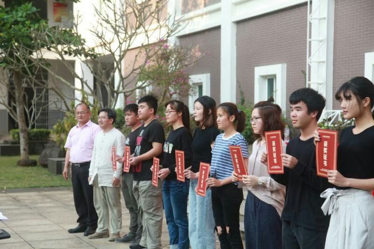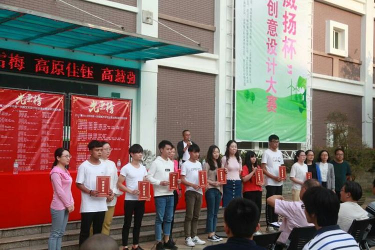 艺术设计专业获奖学生与各自指导教师共同上台领奖也是充分体现教学相长,师生真诚互动其乐融融,良好的教学氛围。