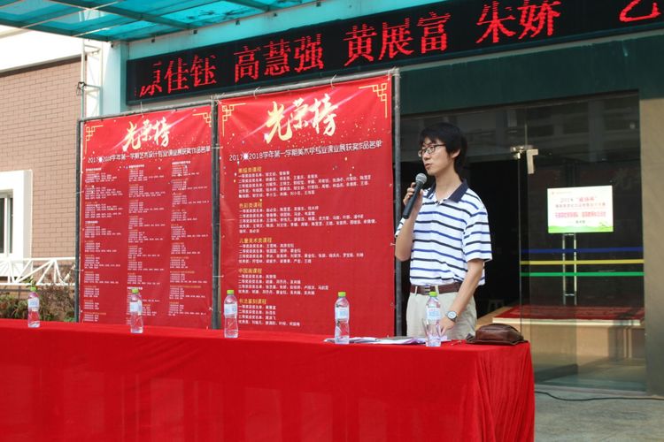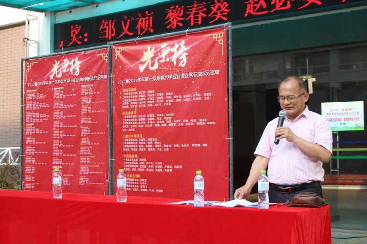 美术系王海清书记宣读获奖学生名单,并对他们辛勤付出而获得的成绩表示充分肯定,勉励大家继续努力,再创辉煌。