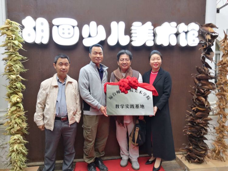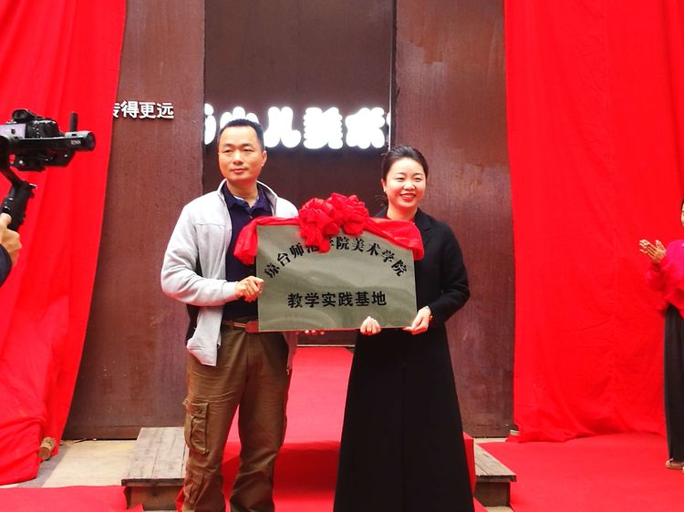 美术系周乃林副主任向胡画艺术中心张春丽校长授教学实践基地牌