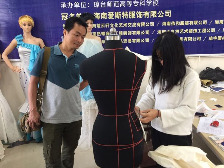 成衣立裁赛项美术系周乃林副主任、艺术设计团队王康媚主任亲临指导