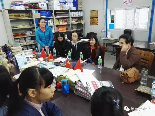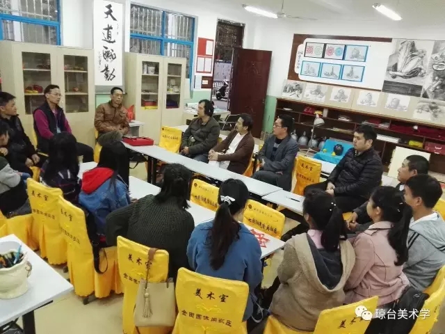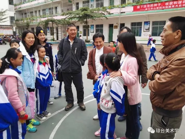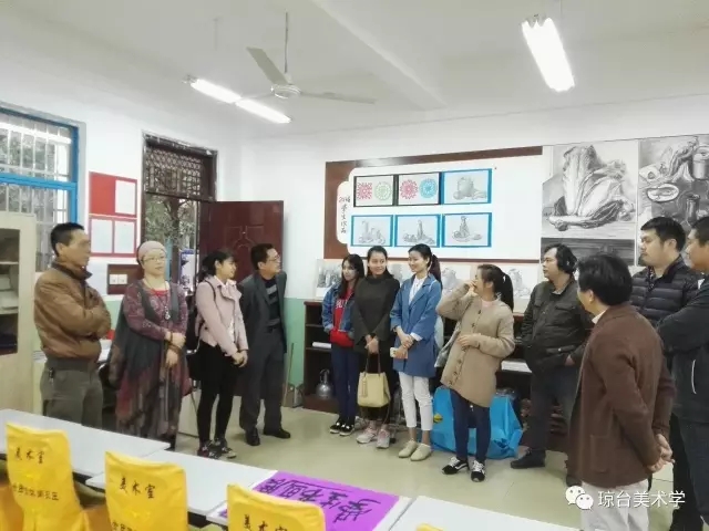 美术系2017届美术教育专业毕业生2012(五)美术教育班、2014级美术教育(1)、 (2)班共计三个班,136名学生。分为三种实习形式,分别为:国培顶岗实习、随校实习和自主实习。其中,随校实习我系负责澄迈县实习点。为了做好实习收队工作,了解实习生在实习期间的各种情况,了解实习点建设情况,2016年12月28日,美术系符翔康主任、美术教育专业团队刘小莉副主任、陈海艺老师一行前往澄迈进行了实习视察工作,并与实习点领导、各专业实习生、小学指导老师进行交流与座谈。