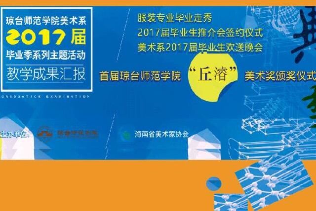 2017年5月23日上午9点30分,琼台师范学院美术系2017届毕业生作品展在琼台师范学院桂林洋校区美术馆隆重举行。本次系列活动由琼台师范学院与海南美术家协会联合主办,活动内容包括美术与设计毕业成果汇报展暨首届"丘濬美术奖"颁奖、校企合作用人单位就业签约、服装走秀等项目。