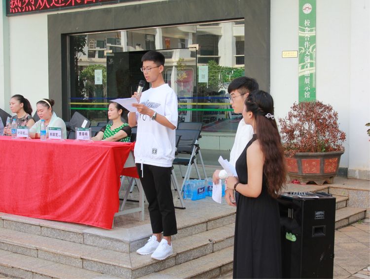 2017年9月22日早8:30,在美术馆前举行了一场简单而隆重的仪式——新生开学典礼,这是军训后我系组织的第一场大型活动,出席的嘉宾有美术海清书记、周乃林副主任、学工办主任黄坤老师、辅导员郭兴和张蕾老师、教学秘书叶彩虹老师、行政秘书羊颖芝老师,以及美术教育团队主任徐老师,艺术设计团队主任王康媚老师、副主任张鹰和曹春楠老师,以及新生班级班主任和全体新生们。