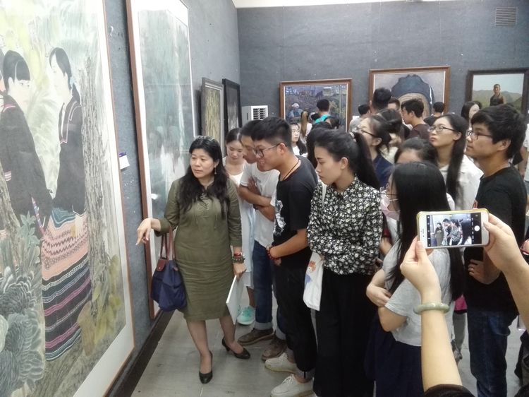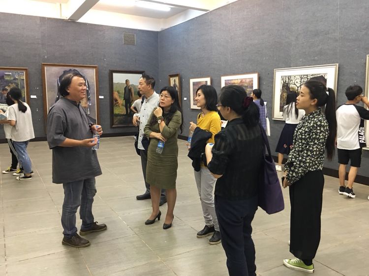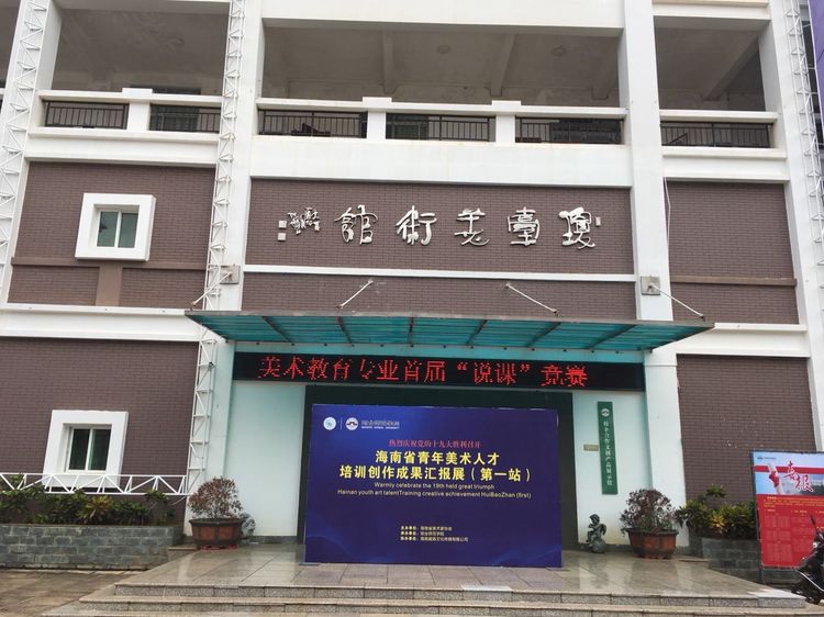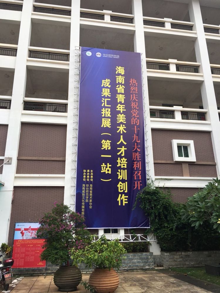 热烈庆祝党的十九大胜利召开,海南省青年美术人才培训创作成果汇报展(第一站)在琼台师范学院美术馆展出。出席的嘉宾有海南省美术家协会主席陈茂叶,副主席周建宏、卢向玲、曾周、陈为云,承办单位琼台师范学院美术系主任,美协副主席符祥康,周乃林副主任,以及参加青年人才培训的学员和海师大美术学院、琼台美术系师生们,协办单位海南威扬文化传媒有限公司总经理卫军红和全体员工。