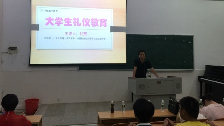 新的学期里,学院又迎来了新的一批莘莘学子。经过一周的军训,在9月18日晚7:30—9:30美A103阶梯教室,琼台师院美术系艺术设计团队开始第一场新生教育讲座《大学生礼仪教育》,美术系周乃林主任也到讲座现场对新生提出了要求和希望,由法学学士、中国形象设计协会礼仪培训师甘赟老师,为新生们即将开始的大学生活做了一场非常精彩的礼仪规划,让新生们做好更好地建立良好的人际关系,完善大学生人格,提高自身文化修养,更好地融入到集体中来的准备。讲座受到了新生的热捧和好评,掌声不断…