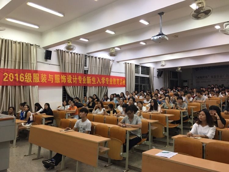 同学们认真的听讲座,不仅有服装专业三个年级的全体同学,还有看到宣传海报慕名而来的全校其他系的学生们