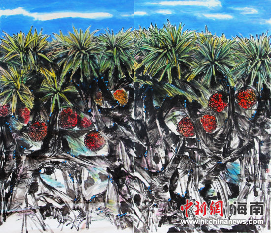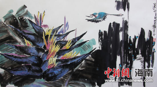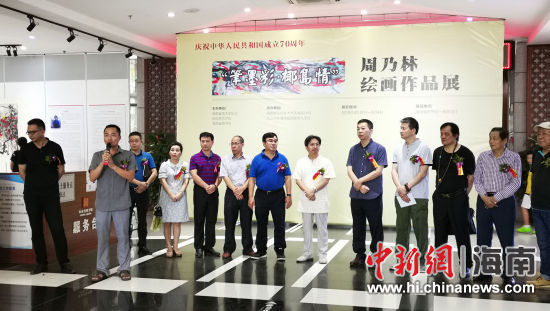 中新网海南新闻4月27日电(吴天军)4月27日,由海南省美术家协会、琼台师范学院、海南省图书馆主办的“笔墨彩·椰岛情”——周乃林绘画作品展在海南省图书馆展出。本次共展出国画作品约90幅,作品通过浓墨重彩表现出海南独特的自然风光和优美的生态环境。