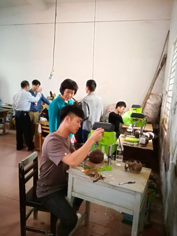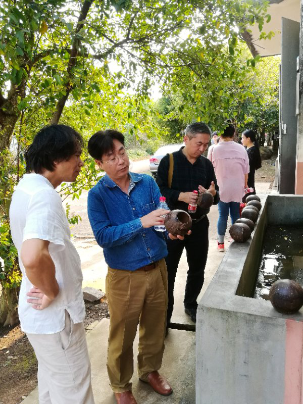 刘实葵处长与非物质文化遗产传承人吴名驹先生讨论了关于椰雕传承师徒制、授课内容、椰雕设计与企业生产相结合的发展可行性、以及我校申遗项目的重要性。