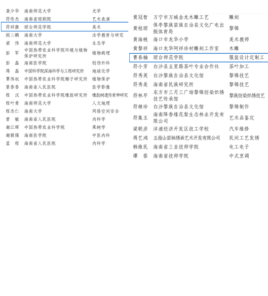 2019年初,琼台师范学院美术系主任符祥康教授和服装设计专业负责人曹春楠讲师分别入选第一批“南海系列”系列育才计划“南海名家”和“南海工匠”名单。