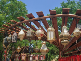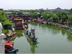 清明上河园,是按照北宋著名画家张择端的传世之作《清明上河图》为蓝本建造的大型宋代历史文化主题公园,坐落在八朝古都开封,景区占地六百余亩,其中水面一百八十亩,大小古船五十多艘,房屋四百余间,景观建筑面积三万多平方米。全面还原了名画《清明上河图》中城门楼、虹桥、街景、店铺、河道、码头、船坊等诸多场景,使人身临其境地体会宋代的社会风俗。