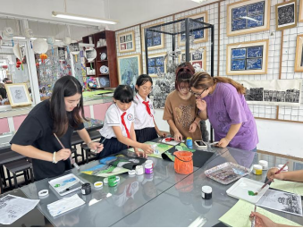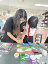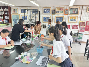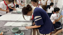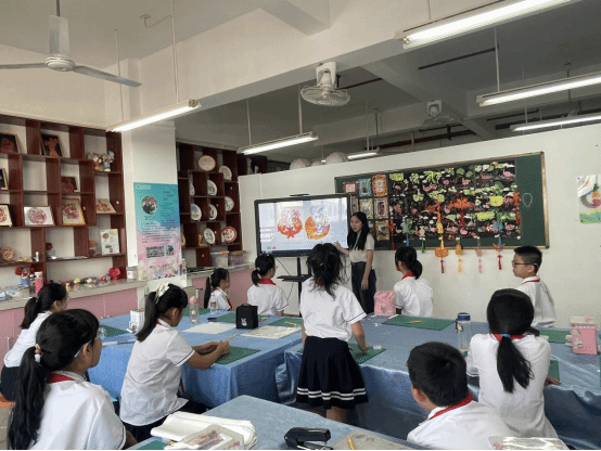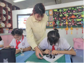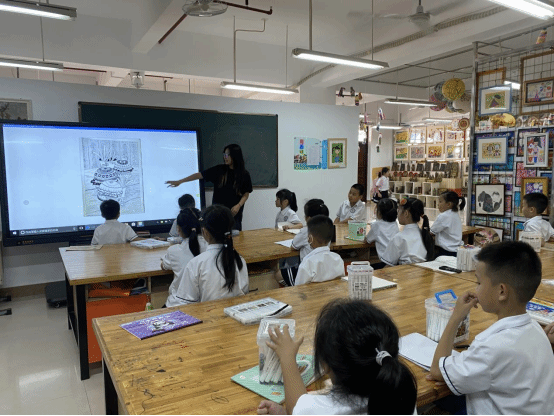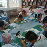 美术学专业是美术学院贯彻落实学校快乐阳光教育实践教学项目的主干力量,2023年5月5日下午,美术学专业周冬蕾和李莎老师两位老师带领美术学专业17名学生前往海口市第二十五小学开展了本项目2023年的第一次活动。本次活动项目分《灵巧手工》《七彩童画》《快乐剪纸画》《翰墨国画》《趣味版画》《创意美术》共6门课后服务美术特色课程,参与活动的17名学生分布在6个不同主题教室作为主讲教师进行授课或协助小学美术教师授课。