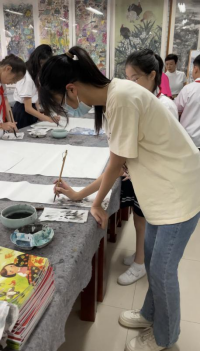 我院学生在《翰墨国画》课程中协助李海珠老师辅导学生进行国画创作