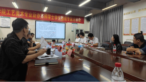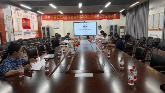为了更好地开展设计学特色学科,顺利实施学科成果验收,2023年10月23日下午,琼台师范学院美术学院工艺美术专业开展了新办本科学士学位授权专家评审会,会议由徐劼副院长主持,曹春楠主任进行汇报。会议的评审专家包括琼台师范学院美术学院的符祥康院长、沈速书记、周乃林副院长,邀请的专家有叶仄辉,张君,评估督导办黄细渭主任出席会议。