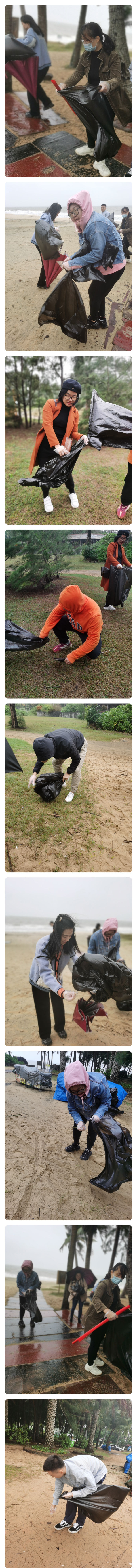 “快过来,这里有垃圾。”“把袋子拿过来。”“把袋子打开给我装一下空瓶子。”随着一句句亲切的话语,一个个捡起垃圾装进袋子的动作,同志们在不知不觉中进行着海滩整治工作。同志们发扬不怕苦、不怕脏、不怕累的精神,都在努力地为美丽海滩贡献自己的一份力。他们相互协作配合,认真清理海滩边的杂物,捡起丢弃在海滩上的各种生活垃圾,如瓶子、果皮、破烂渔网、烟头、废弃塑料品等。经过大家的一番努力,这片海滩变干净整洁了。看着变干净的海滩,同志们脸上露出满意的笑容。