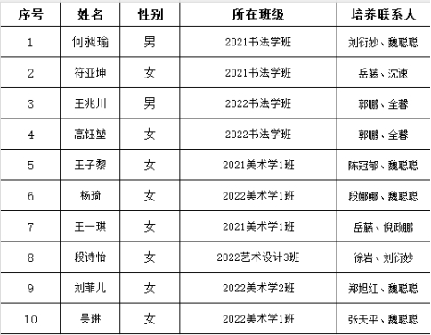 根据本人申请、组织培养,党内外群众及培养联系人意见,经美术学院党委学生党支部研究,拟确定何昶瑜等10位同志为党员发展对象。现将其相关情况予以公示,公示时间为2024年10月25日--10月29日。在公示期内,如对上述公示对象有疑议,可以书面(实名)、电话等形式向本支部反映,反映问题应实事求是,客观公正。