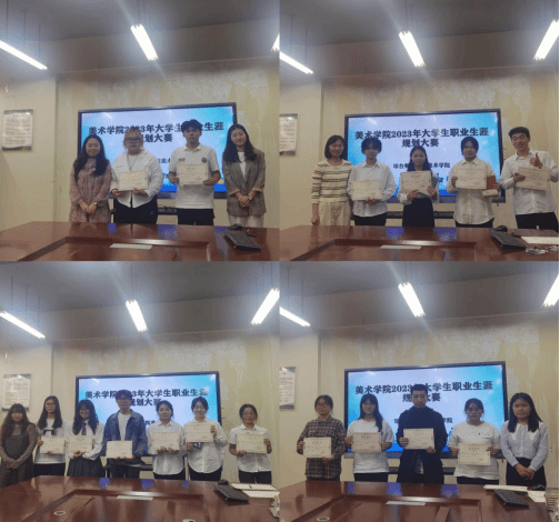 为更好地实现以赛促学,引导大学生树立正确的成才观、就业观和择业观,科学合理规划学业与职业发展,提升就业竞争力。美术学院于11月24日组织开展2023年大学生职业生涯规划大赛。担任本次比赛评委的有文学院就业辅导员韩紫薇老师、美术学院学工办全体辅导员。