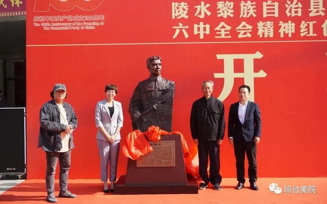中共陵水黎族自治县委宣传部常务副部长吴宗伟,琼台师范学院党委副书记陈晖阳,中国美术家协会理事、海南省美术家协会主席陈茂叶,陵水革命先烈黄振士的后人——黄仁昌老先生共同为《黄振士》雕像揭幕。
