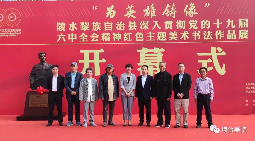 2021年12月10日上午,“庆祝中国共产党成立100周年‘为英雄铸像’陵水黎族自治县深入贯彻党的十九届六中全会精神红色主题美术书法作品展览”在陵水黎族自治县体育馆开幕。本次展览由中共陵水黎族自治县委宣传部和琼台师范学院共同主办,琼台师范学院美术学院承办,本次活动作为学院与陵水县委宣传部合作项目,既是学院横向课题,更是我们专业服务社会,助力海南自贸港文化繁荣发展的特色体现。