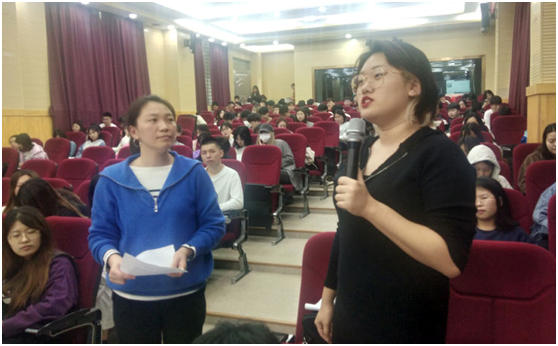 讲座尾声唐丽春教授与同学们互动答疑