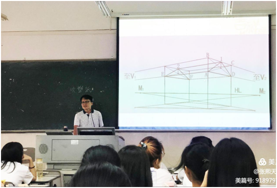 课为张斌华老师,授课班级2020美术学1班授课内容《倾斜透视》。学校主管教学的
