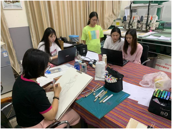 曹春楠、姚文华老师给B组展示活动同学们指导集体设计项目