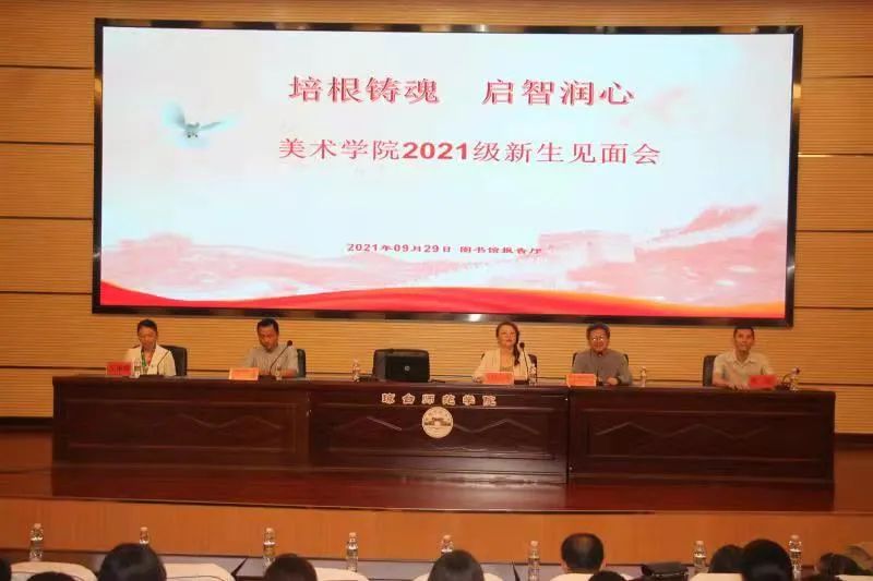 起智润心”为主题的美术学院2021级新生见面会。学院党总支书记、院长、副院长、