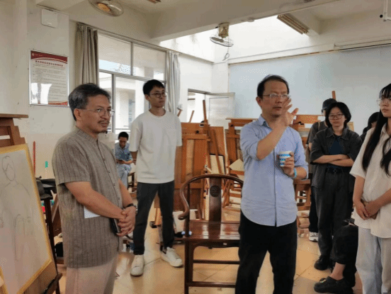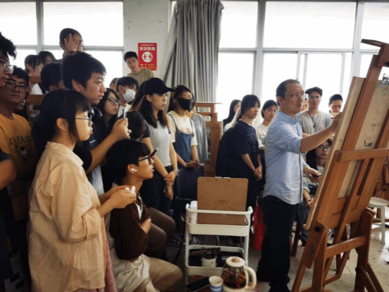 2023年10月31日上午,由琼台师范学院主办、琼台师范学院美术学院承办的“琼台艺术讲堂”,在琼台师范学院美术学院509教室拉开序幕,本次活动邀请到了中央美术学院教授、博士生导师、中国美协会员、新疆艺术学院美术学院院长贺羽教授,为2022级美术学专业本科生进行了现场示范指导教学。美术学院符祥康院长致辞,美术学院副院长徐劼带领美术学部分教师与2022级、2023级美术学本科生现场观摩。