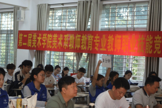 为全面落实立德树人为根本任务,以赛促教、以赛促学,激发学生更新教育教学理念和掌握现代教学方法的热情,搭建相互学习、交流平台,展现学生课堂教学新风采,同时,为检验我系教育教学的培养质量,促进教育教学工作创新发展。琼台师范学院美术学院于12日下午2:30组织2021级和2022级美术学专业的学生在实验楼D202进行第二届美术学院美术系教师教育专业教师职业技能竞赛。