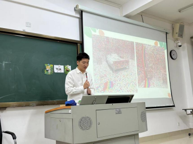 本次竞赛经由前期报名等环节,最终参赛的共20名学生,5人为一组依次进行教学展示。此次竞赛中同学们基本都能够完成一个相对完整的上课流程,参赛的同学们通过对教材的分析进行巧妙的设计,以饱满的热情呈现出精彩纷呈的课堂。(插学生讲课现场图,多且优)