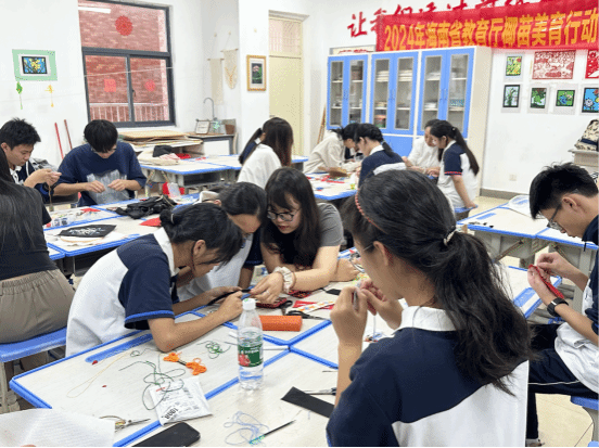 在苗族刺绣动手做活动中,同学们学习态度积极,认真细心,表现出对于苗族刺绣的极大热情。