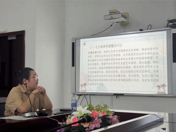 最后由工艺美术系张蕾老师详细介绍“黎族剪纸”美育课程实施方案。黎族剪纸,是乐东黎族自治县古老的民间艺术,承载着深厚的文化底蕴和历史记忆。此课程旨在让更多的老师学生领略黎族剪纸的魅力,传承和弘扬这一珍贵的非物质文化遗产。课程首先要详细介绍了黎族剪纸的历史渊源、艺术特点和基本技法。理论知识的学习是第一步,剪纸挑战在于实践操作。需要授课老师的悉心指导。从简单的图案到复杂的构图,课程要由浅入深的使老师学生掌握剪纸技巧,才能够更好的将文化内涵融入到自己的作品中,才能使每一幅剪纸都能充满生命力和故事性,才能真正达到美育沁润的作用效果。