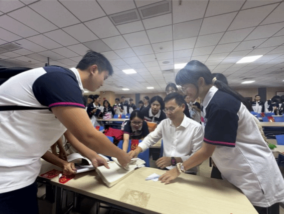 讲座结束后,沈教授耐心解答了大家的疑问,同学们积极参与互动,争相索要沈教授的签名,现场气氛热烈!他表示,希望通过此次讲座,能够让更多的同学了解并欣赏到中华书法艺术的博大精深。本次讲座的成功举办,不仅丰富了华二附中乐东黄流中学校园文化生活,也为传承和弘扬中华优秀传统文化作出了积极贡献!