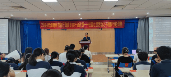 11月10日上午9:30,椰苗美育教学团队于华二附中乐东黄流中学学校大礼堂,开展美育进校园活动,琼台师范学院美术学院周乃林教授开展题为“海南非物质文化遗产保护——非遗与生活漫谈”的学习讲座。