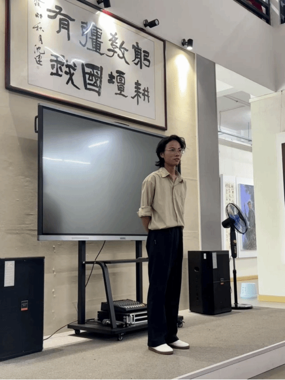 随后,书法系副主任张祥和老师在感谢学院支持的同时,特别指出本次展览策划长达一年,作品创作凝聚了半年的心血,他赞扬了谭炜睿的坚持与成果,并勉励其继续前行。