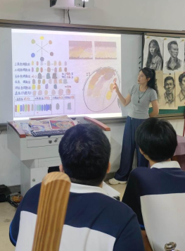 2025年10月15日,琼台师范学院美术学院张蕾老师赴华东师范大学第二附属中学乐东黄流中学,为高一、高二美术生带来一场聚焦“色彩语言与表现”的课外美育课堂。