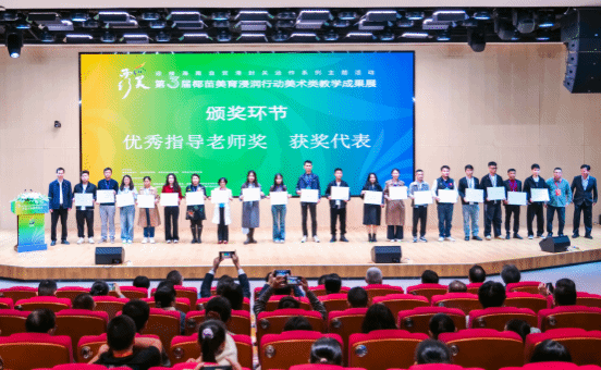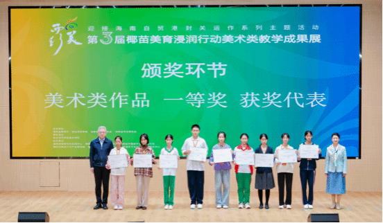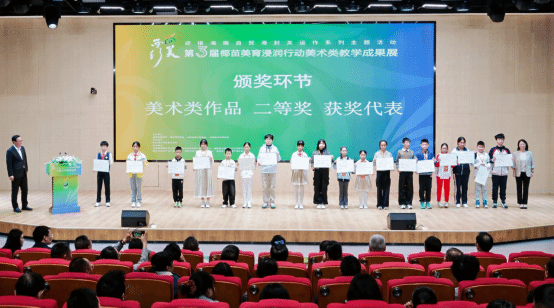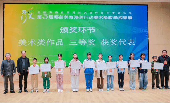颁奖环节有序进行,依次颁发优秀指导老师奖项、美术类作品三等奖、二等奖、一等奖。每一项奖项的颁发都伴随着热烈的掌声。颁奖嘉宾与获奖师生合影留念,记录下这一荣耀时刻。