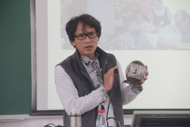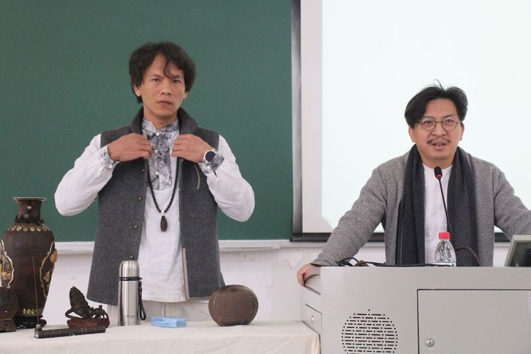 本次讲座非遗传人吴名驹从过去—现在—未来三个时期介绍椰雕,让更多的同学们了解海南椰雕的历史和人文,利用历史上的收藏品深入地分析椰雕的价值和应用,深入浅出地传授椰雕的设计理论,把自己的设计作品案例作为理论设计的支撑,在最后未来部分讲到了校企合作的问题,分析在海南国际旅游岛的大环境下椰雕的光明未来。