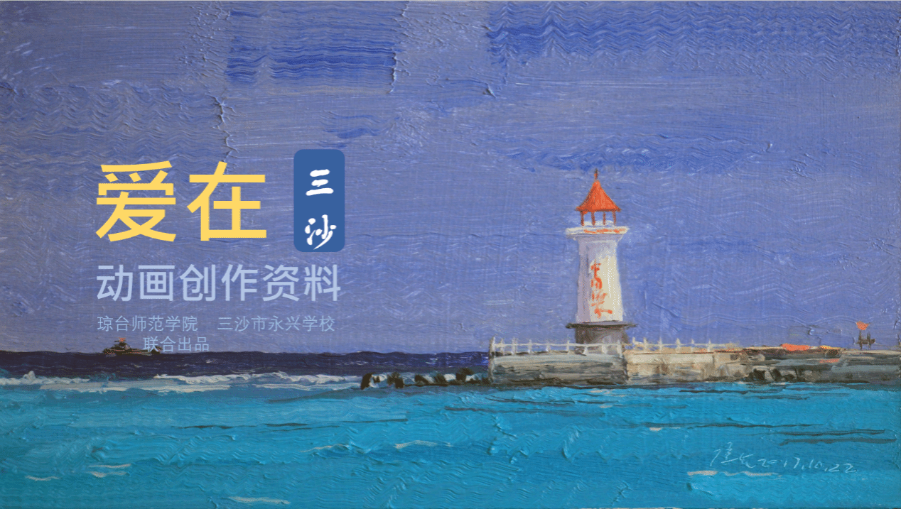 原创动画作品《爱在三沙》以我校师生在三沙岛永兴学校支教事件为原型,讲述了我校响应国家一带一路倡议,发挥自身优势主动服务南海的教育事业,无条件选派50多名教师上岛支教助力祖国最南端的学校——永兴学校的建立与发展的故事,以我校教师及家属在永兴岛的工作生活为线索,浓缩了我校三沙支教团队多年来在永兴学校辛勤耕耘的汗水,体现了琼台学子浓厚的家国情怀与强烈的社会责任感,他们甘于奉献,将自己的人生融入到实现中华民族伟大复兴中国梦的历史洪流中。